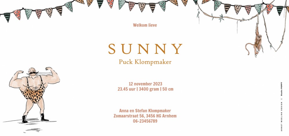 Geboortekaartje 'Cirque du Fantasy' van Annet Weelink Design