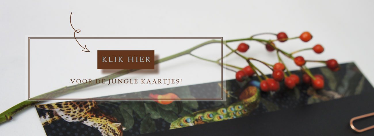 Het karakter van onze jungle kaartjes lenen zich zeer goed voor foliedruk. Foliedruk is er in 4 varianten, roségoud, goud, zilver en koperfolie. Als je er niet helemaal uitkomt welke variant je het mooiste vind, laat het ons even weten. Wij kunnen je vast helpen.