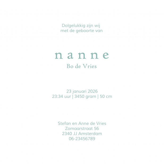 Hip geboortekaartje waar je zelf nog elementen aan toe kunt voegen. Kijk eens in de beeldbank om jouw kaart nog meer eigen te maken. De naam kun je ook in foliedruk laten drukken, héél mooi!