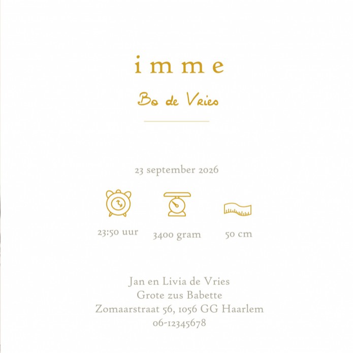 Hip geboortekaartje waar je zelf nog elementen aan toe kunt voegen. Kijk eens in de beeldbank om jouw kaart nog meer eigen te maken. De naam kun je ook in foliedruk laten drukken, héél mooi!