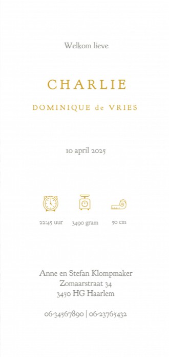 Hip geboortekaartje waar je zelf nog elementen aan toe kunt voegen. Kijk eens in de beeldbank om jouw kaart nog meer eigen te maken. De naam kun je ook in foliedruk laten drukken, héél mooi!