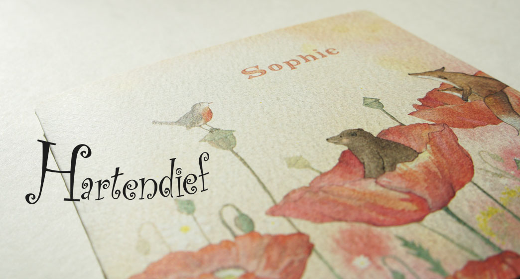 Studio POPPY is erg blij met de samenwerking met Hartendief, we zagen gelijk de schoonheid van de illustraties. Met de hand geschilderd, een verademing in de grote digitale wereld. Zelfs de structuur van het aquarel papier laten we aan je zien!