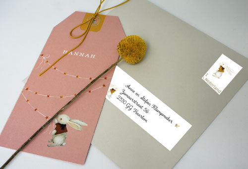 Zelfs de adresetiketten kun je in stijl laten drukken. Bovendien handig, dat scheelt een hoop werk wanneer je de post wil gaan verzenden.